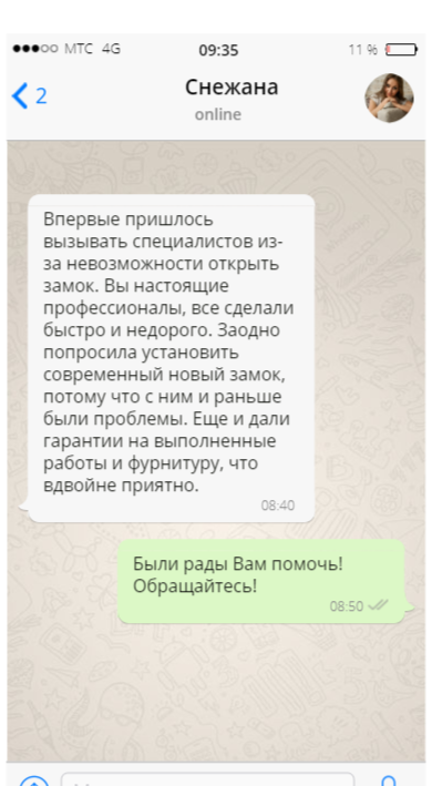 Вызвать по телефону или через сайт мастера нашей компании можно 7 дней в неделю, 24 часа в сутки, без выходных и праздников.
